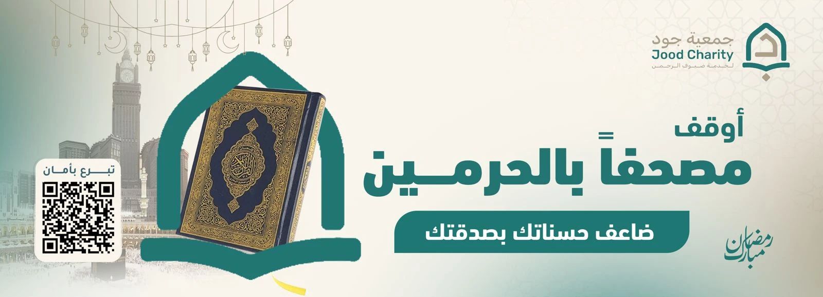 أوقِف مصحفًا باسمك لضيوف الرحمن ..صدقتك الجارية في الحرمين الشريفين تلاوات تضاعف الأجور و الحسنات